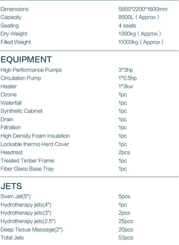 | Usage/Application | Hydro massage therapy,Professional Swimming and Relaxation |